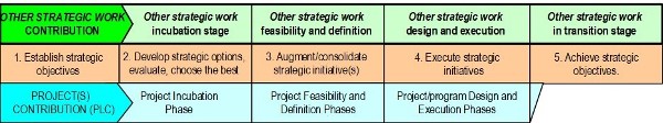 These two sections were represented as shown in Figure 2. It was acknowledged that there are no universally agreed sets of processes for either the strategic or project life-cycle frameworks, but it was contended that these rather broad-brush representations should be widely applicable.