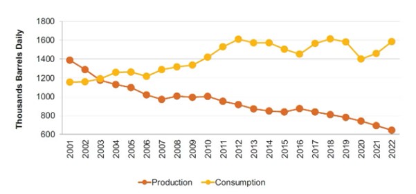 Figure 1 Fuel Oil Production vs Consumption in Indonesia from 2001 – 20222