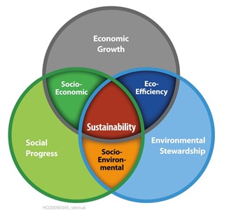 “In the broadest sense, sustainability refers to the ability to maintain or support a process continuously over time. In business and policy contexts, sustainability seeks to prevent the depletion of natural or physical resources, so that they will remain available for the long term.”[ii] Sustainability is made up of three pillars: the economy, society, and the environment. These principles are also informally used as profit, people, and planet. Sustainability stresses intergenerational equity.