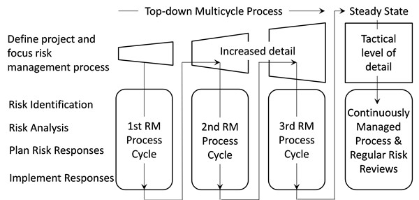 The term composite risk was coined by Prof Chris Chapman when contributing to the APM guide Prioritising Project Risks (2008). It describes a risk identified at a high level of risk decomposition which could be decomposed into lower-level risks, should that prove to be a productive path for the risk management process to follow. Composite risks may be a feature of the earlier stages of a top-down multi-cycle approach to the risk management process.