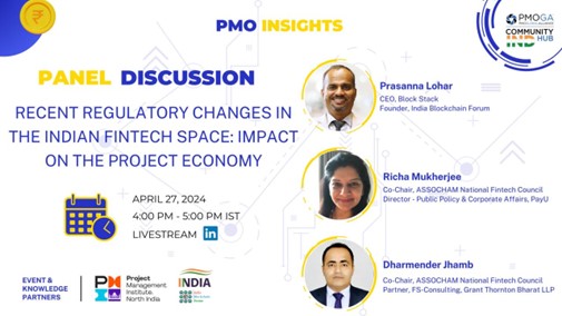 The PMOGA India Hub, in collaboration with the PMI – North India Chapter and the India Blockchain Forum, hosted a groundbreaking panel discussion on the recent regulatory changes in the Indian Fintech space and their impact on the project economy.