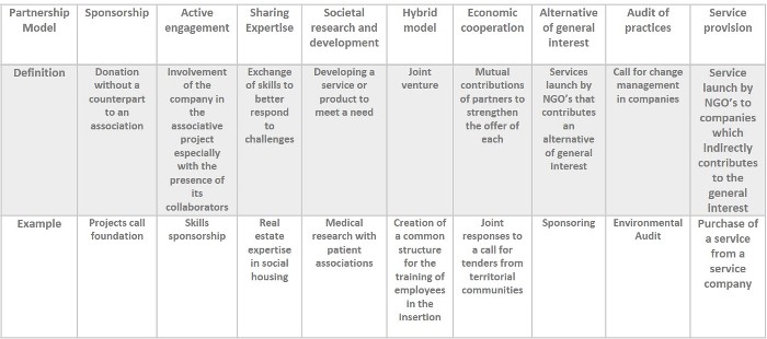 [3] Association CLER. (2013, 2). Les différentes formes de partenariats entre association et entreprises? Retrieved from https://fr.slideshare.net/AssociationCLER/les-diffrentes-formes-de-partenariats-entre-association-et-entreprises-23784173