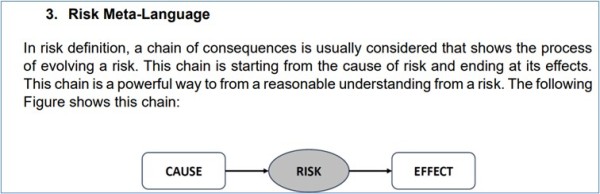 My comments refer to the points raised by the risk definition chain shown below as defined section 3 in the article.