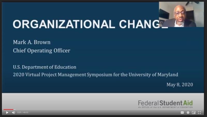 Keynote speaker Mark Brown, Chief Operating Officer, Federal Student Aid, U.S. Department of Education kicked off the second day of the live symposium.